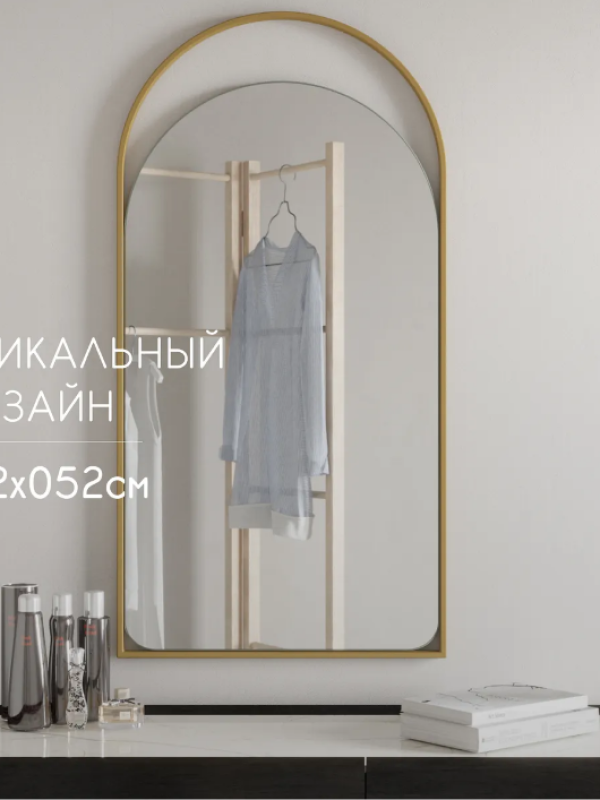 Дизайнерское арочное настенное зеркало Glass Memory Artful в металлической раме золотого цвета в Вольске